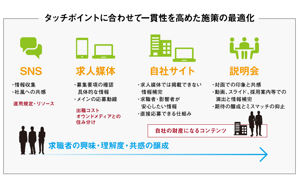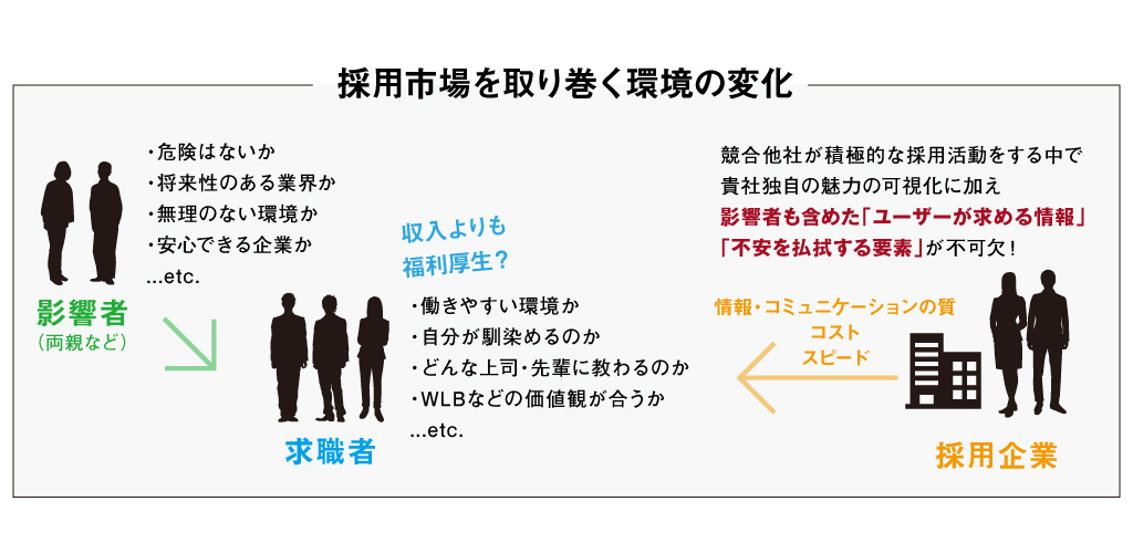等、求職者とその影響者の不安を払拭する情報のコンテンツ化が重視されています。