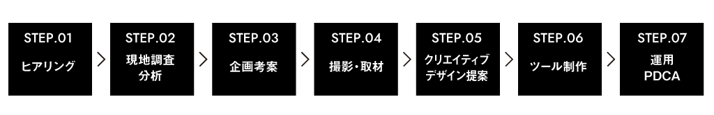 良質なコンテンツに欠かせない、感度の高い写真や動画、よりリアルで熱のこもったターゲットに刺さる言葉を引き出すインタビューなどの素材を整理し、香盤表やインタビューシートを元にスチールや動画の撮影、取材の実施。