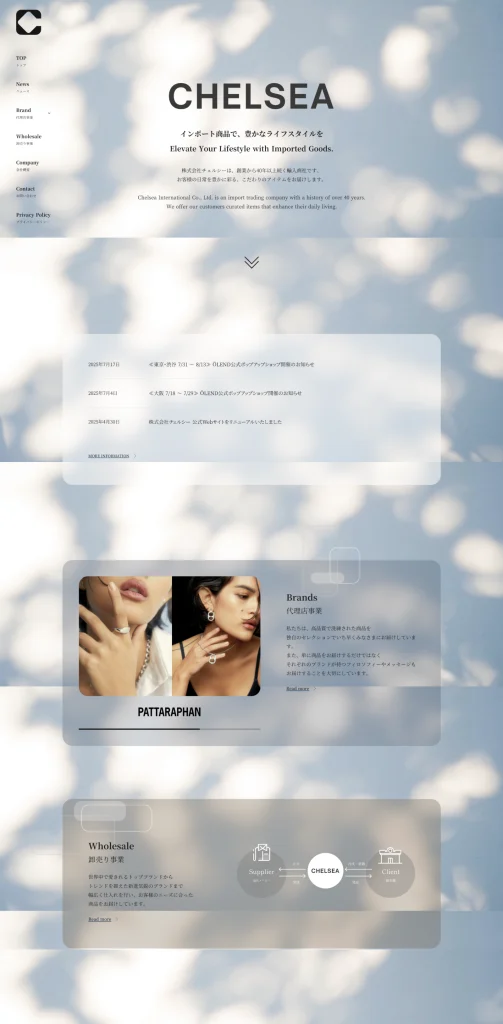 今回のリニューアルでは、事業内容をメニューに追加し、ユーザーが迷わず情報に辿り着けるよう調整。お問い合わせページでは選択肢を設け、内容ごとに分岐できるようにしました。輸入商社としての活動をより具体的に記載し、信頼性、安心感を高められるよう制作しました。