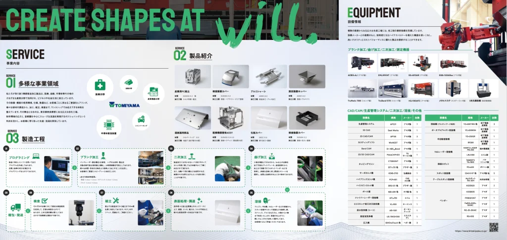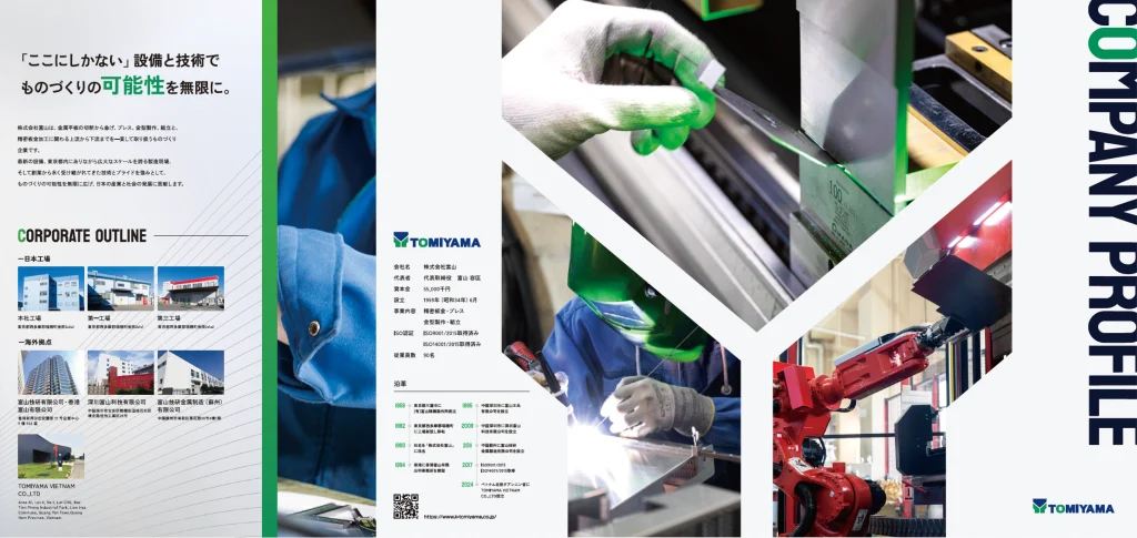 実際の作業風景や設備を写真に使用し現場の熱が伝わる企業パンフレット