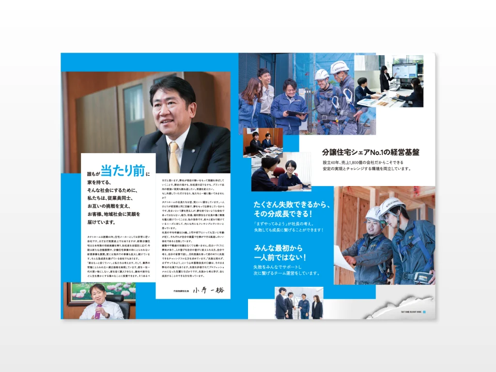 平素よりホームページの制作や運用・保守を担当させていただいているタクトホーム様へ、新卒採用ホームページリニューアルに伴い、パンフレットを一新させて頂きました。