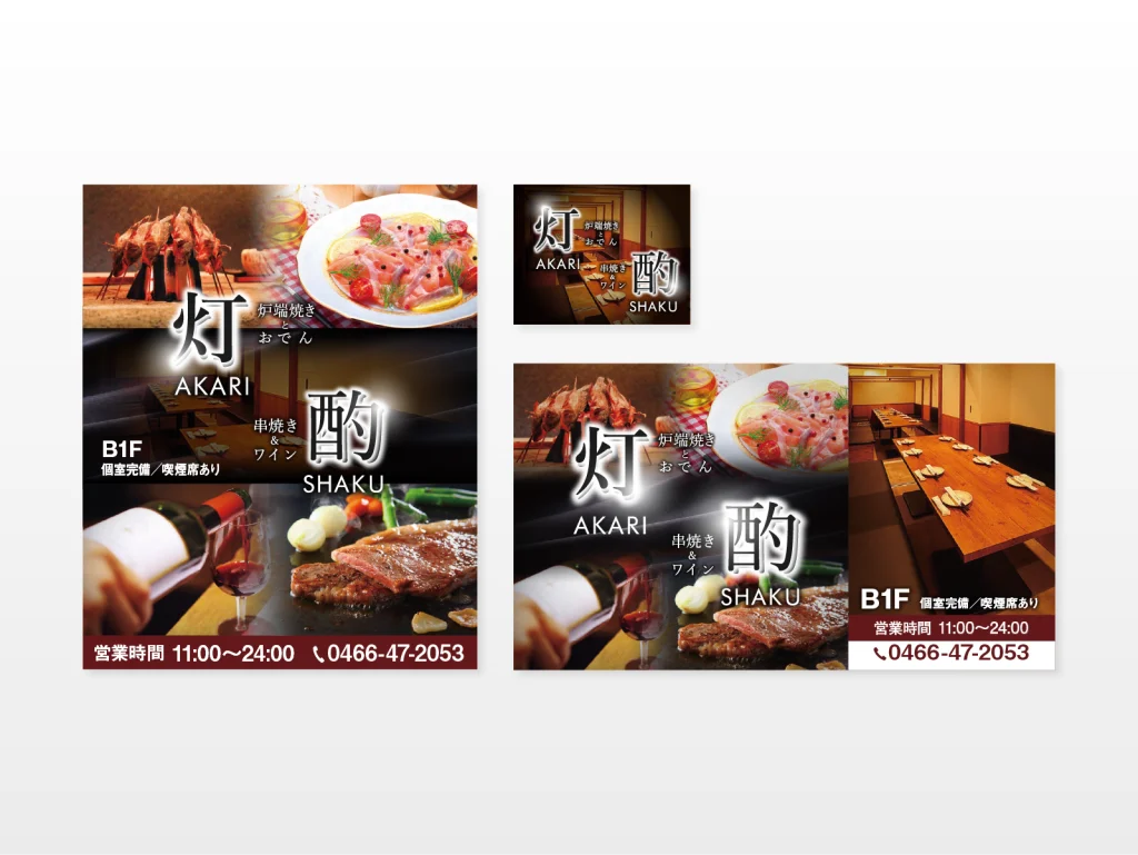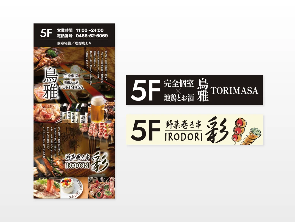 今回の看板デザイン制作では、南口店および北口店の看板デザインをサイズ別に作成いたしました。