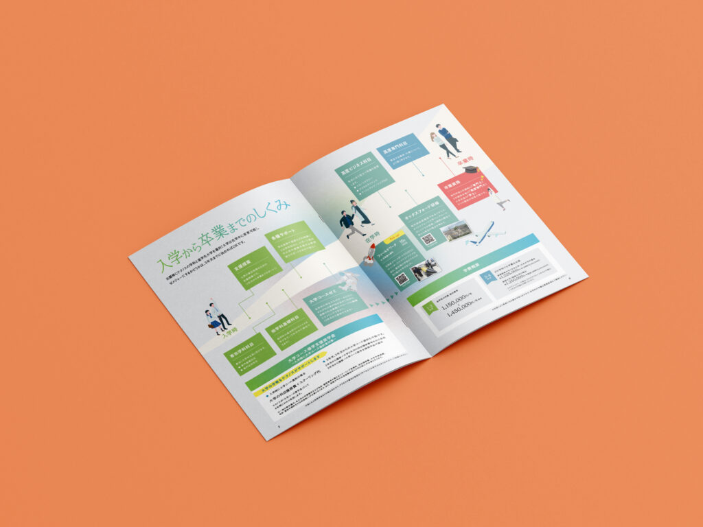従来の学校パンフレットにはない新しい表現に挑戦しました。