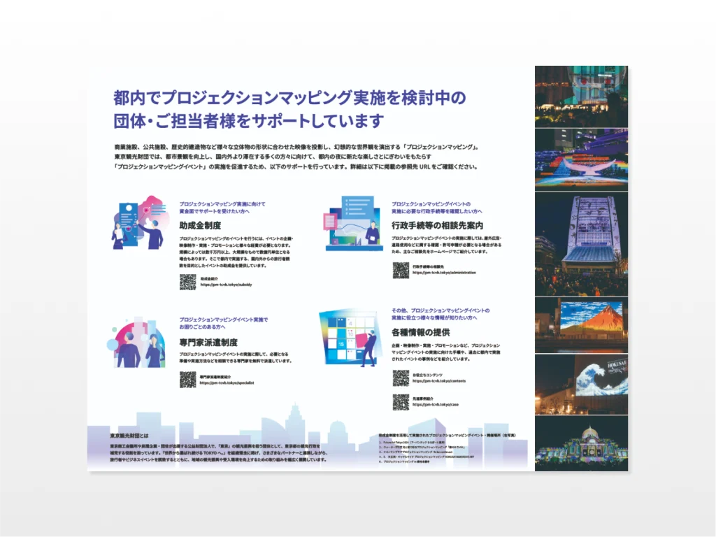 都内でプロジェクションマッピングを実施したい団体様やご担当社様向けに、サポート用パンフレットを制作いたしました。
